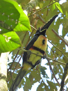 These guys are totally un-photogenic. All you can see most of the time is a grey brown hairball high up in a tree! There are 2 videos which makes it easier to see them, here, and here.